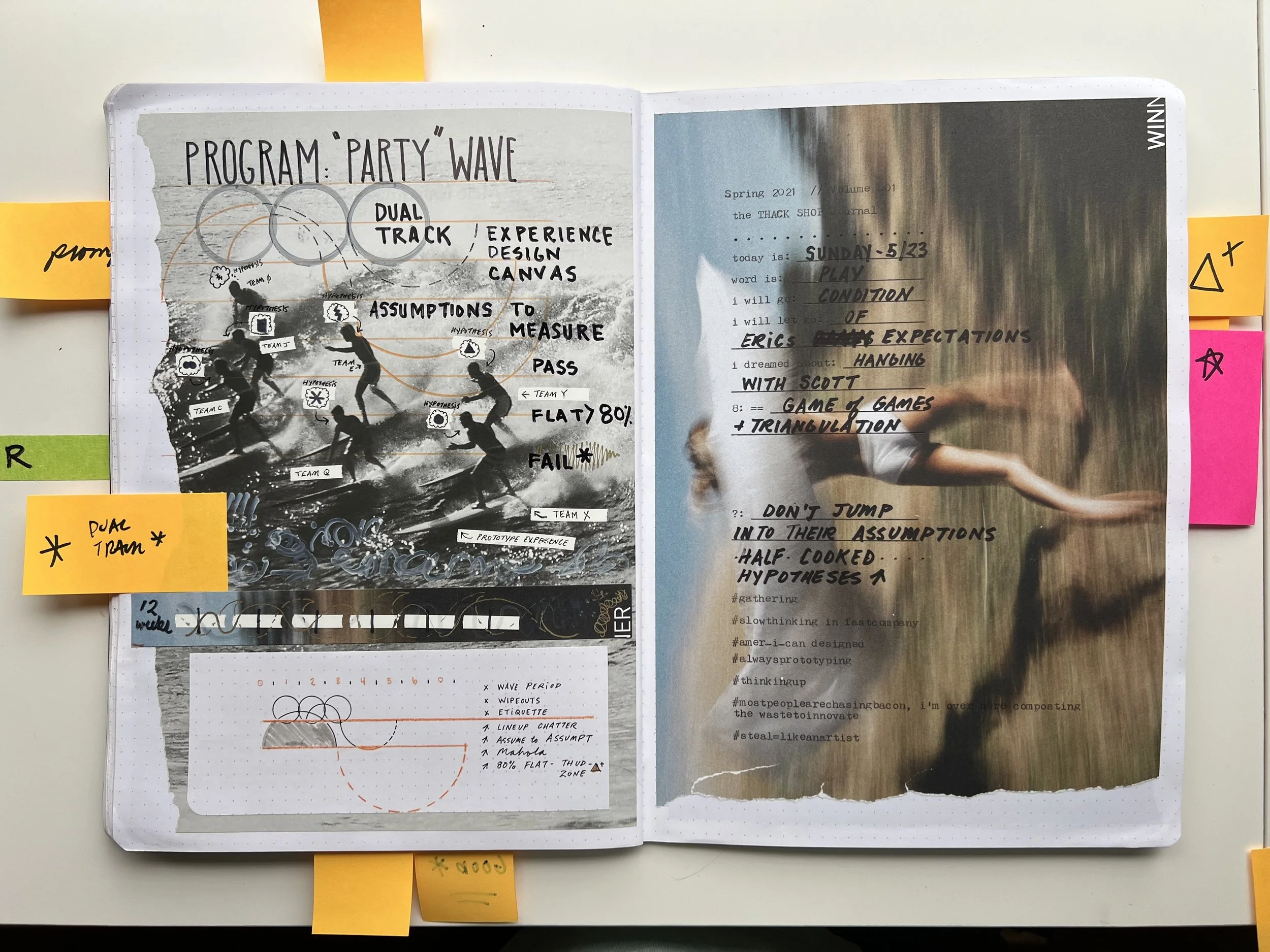 Spring 2021: Mapping the "Party Wave" program - where systematic planning meets the reality of coordinating complex teams. Left side shows the strategy, right side shows what it actually feels like to execute when everyone's riding the same wave together.